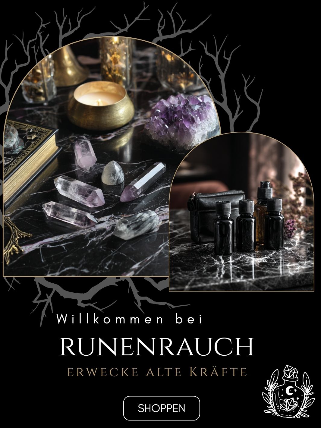 Runenrauch bietet Dir eine sorgfältig zusammengestellte Auswahl an Produkten – von handgefertigten Kerzen und himmlischem Schmuck bis hin zu handverlesenen Kräutern und Ritualsets für jede Phase Ihrer spirituellen Reise. Verbinden Sie sich mit dem Universum und verwirklichen Sie Ihre Träume meinen exklusiven Produkten und geführten Mondzeremonien.
